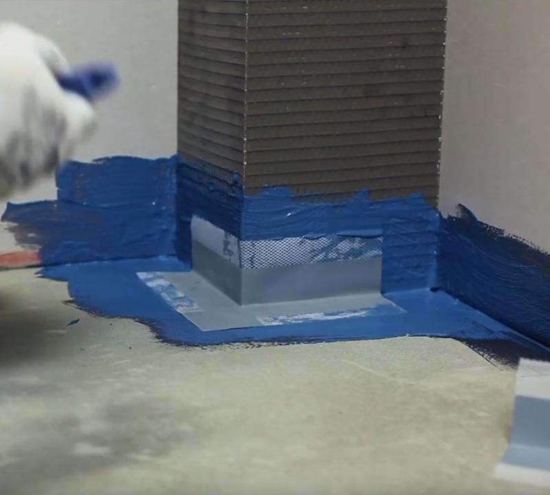 Угловой элемент для герметизации внутренних углов. Угловые элементы CL 86 представляют собой эластичный полиэфирный трикотаж, имеющий сетчатую структуру, водонепроницаемым покрытием из эластомера, и предназначены для герметизации внутренних углов. Сетчатая структура обеспечивает хорошую фиксацию угловых элементов в гидроизолирующей массе. Угловой элемент CL 86 предназначен для герметизации внутренних углов. Угловые элементы применяются внутри и снаружи зданий в сочетании с эластичной гидроизоляцией CL 51 или CR 166 и водонепроницаемой лентой CL 152 при условии отсутствия негативного (со стороны основания) давления воды — в помещениях с влажным и мокрым режимами эксплуатации, бассейнах, резервуарах и т. д. В санузлах угловые элементы допускается вклеивать с помощью гидроизоляционной массы CR 65.